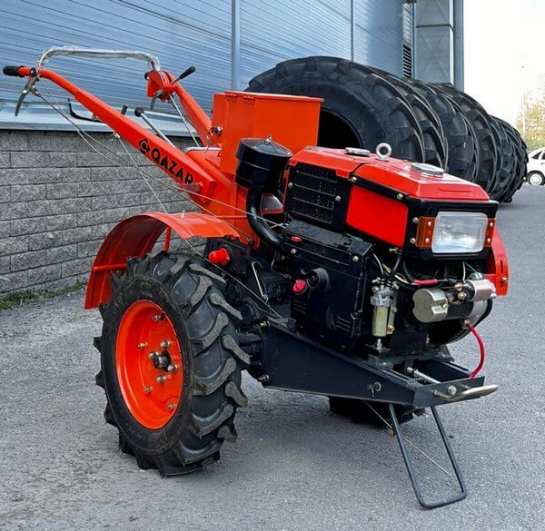Мотоблок дизельный Qazar 15DE отличается эффективностью вспашки целинных земель. Может косить сено, собирать урожай, качать воду с помощью навесного оборудования. Оснащен мощным 4-х тактный двигателем JLN151 с номинальной мощностью 15 л.с. Ширина захвата составляет 100 см. Элементы управления расположены на рукоятке. Благодаря большим колеса, агрегат с легкостью преодолевает любые неровности почвы. В передней части мотоблока расположена откидная стояночная опора.