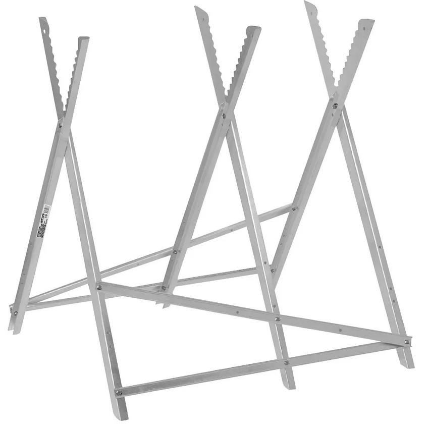 Прочная стальная конструкция выдерживает нагрузку до 150 кг и рассчитана на диаметр бревна до 250 мм. Специальные зубья на опорной стойке надежно фиксируют заготовку, предотвращая её прокручивание во время работы, а форма конструкции позволяет пилить, не рискуя повредить цепь о перекладины.