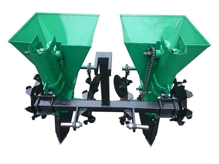 Также важно отметить, что это навесное оборудование имеет колоссальную производительность для механического устройства. Оно способно обрабатывать до 0,2 га земли за 1 час. Два бункера по 34 л вмещают большое количество посадочного материала, и вам не придется постоянно бегать за «добавкой».