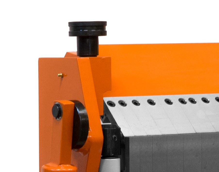Наличие ножного привода позволяет оператору быстро выполнять поворот и перемещение заготовок, а система пружин гибочной балки облегчает работу оператора на станке. Стальная конструкция гарантирует необходимую жесткость и устойчивость станка при ежедневном использовании. Конструкция станка имеет вертикальный ход прижимной балки, что позволяет фиксировать заготовки с строго параллельными поверхностями и более сильным прижимом по всей длине станка, в сравнении с обычными осевыми прижимами.