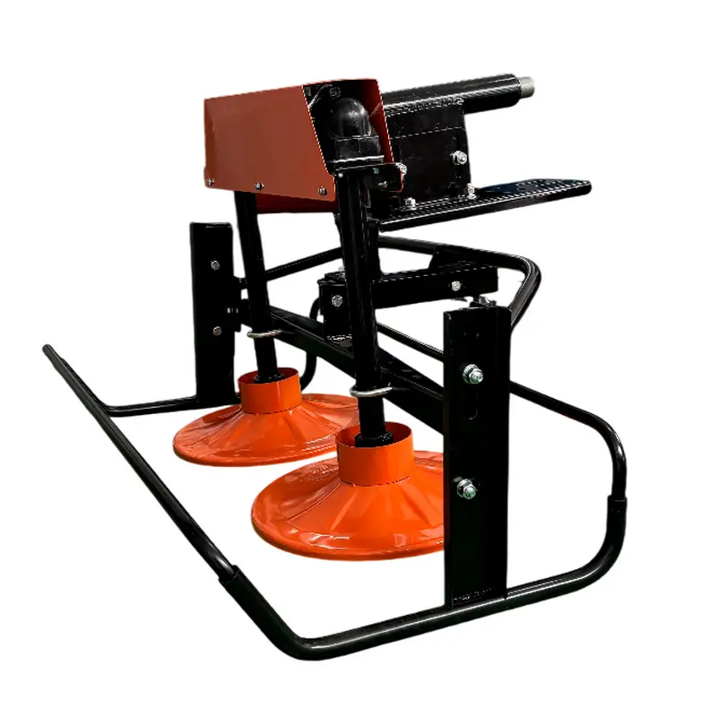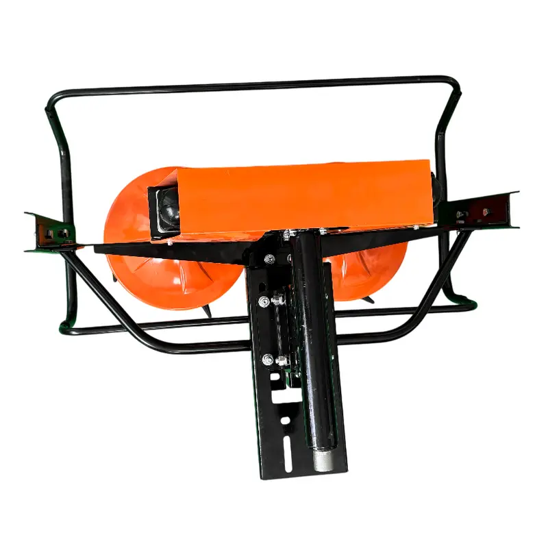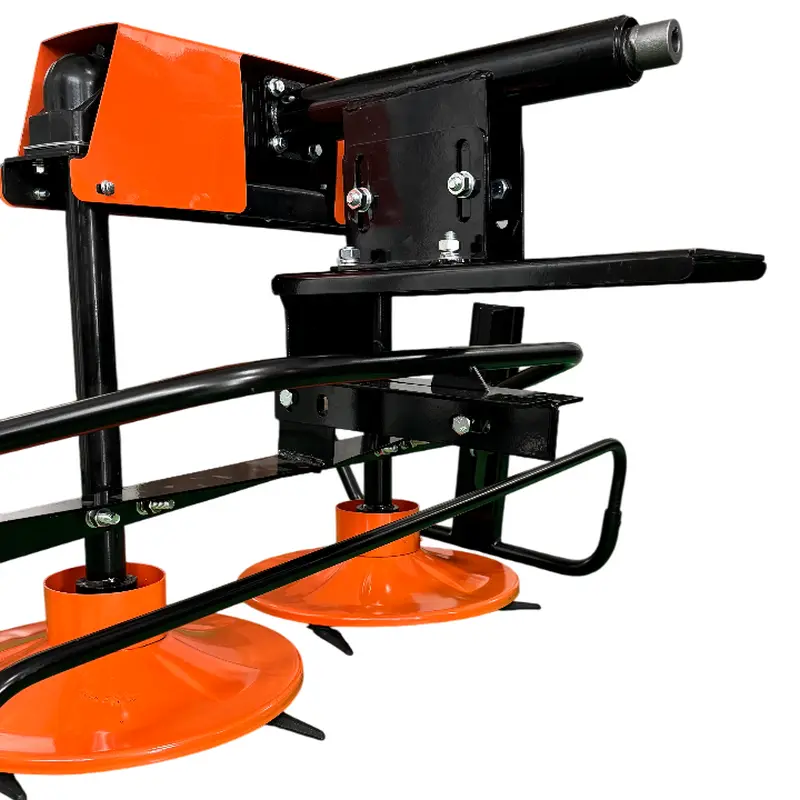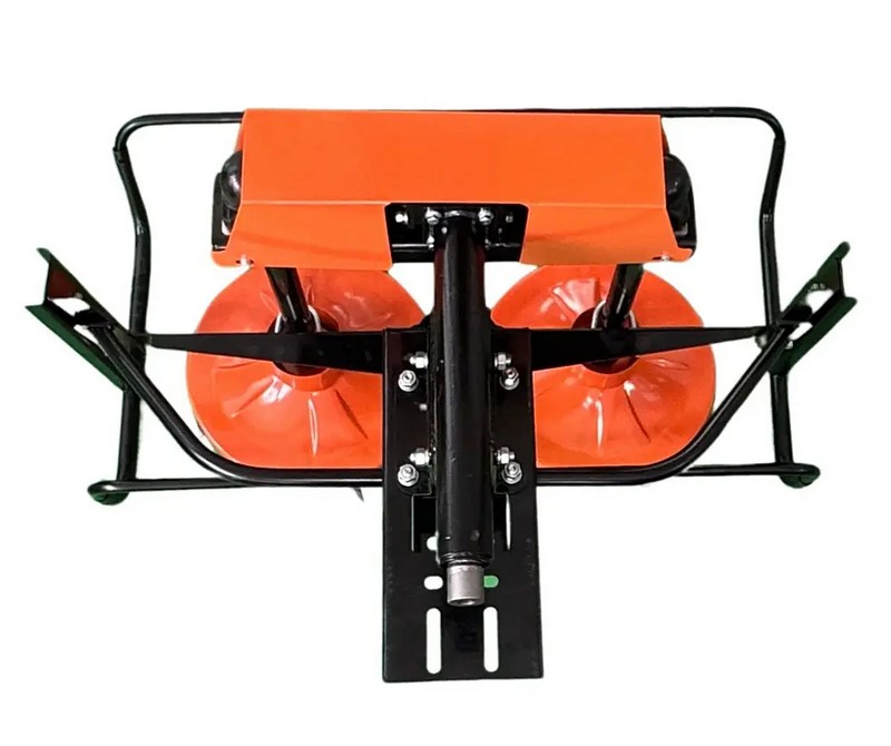 Косилка оснащена двумя мощными роторами, которые обеспечивают ровный, аккуратный срез даже при работе с высокой и густой травой. Благодаря крупным колесам 5.00-12, агрегат уверенно перемещается по неровному рельефу, легко справляясь с работой на сложных участках.