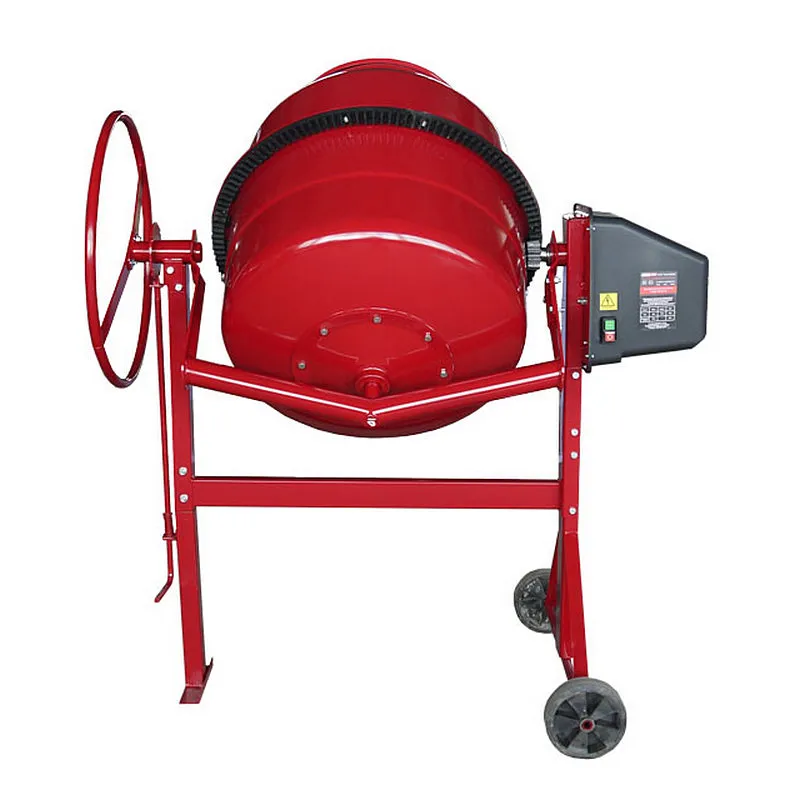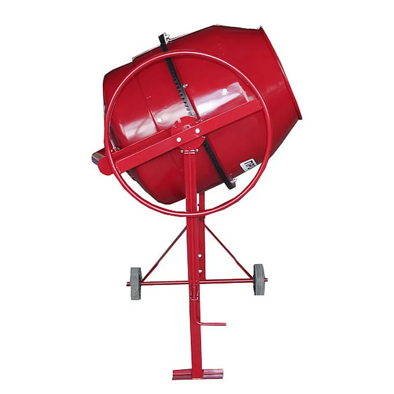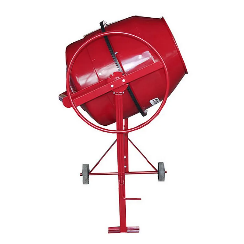 - Для удобного перемещения по строительной площадке бетоносмеситель оснащен двумя транспортировочными колесами на широкой оси, что повышает устойчивость конструкции. Штурвал увеличенного диаметра обеспечивает комфортное и безопасное опрокидывание барабана.